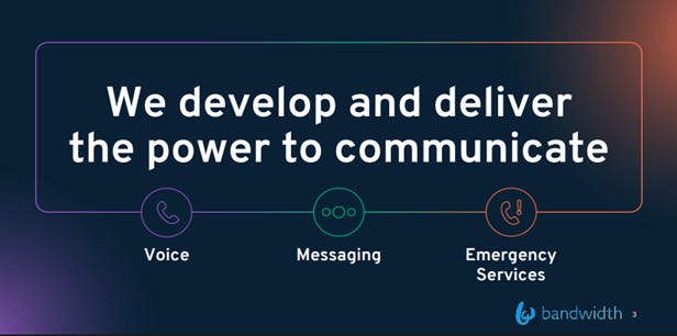 Bandwidth provides the underlying infrastructure that enables enterprises to embed voice calling, text messaging, and emergency services into their software applications. It is not a consumer brand. Its name is absent from the devices and apps that most people touch every day. Yet it is present in the background whenever a Zoom phone call reaches a landline, whenever a two-factor authentication text arrives from a bank, or whenever a healthcare provider initiates an emergency call over an IP line.