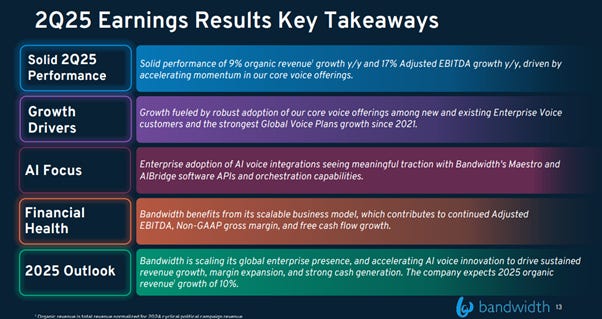These figures are extraordinary when set against the broader technology and communications landscape. Companies with shrinking revenues and questionable futures sometimes deserve such multiples. Yet Bandwidth is still growing with 10% guidance for 2025 and operates in an industry expanding at nearly 30% annually. It is not a declining asset, but the market prices it as though it were.