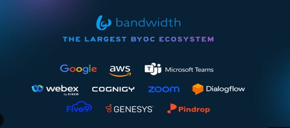 Bandwidth is one of a handful of players in this market. Twilio is the most widely recognized, thanks to its developer evangelism and broad product catalogue. Sinch, based in Europe, and Vonage, acquired by Ericsson, are other important names. Increasingly, the hyperscale cloud providers are also entering the fray with their own communications APIs.