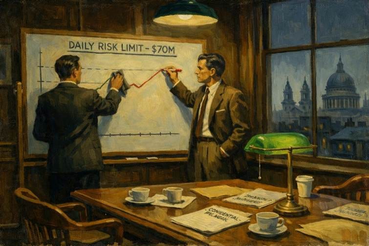 The fundamental failure was operational hubris, a direct violation of Rule 7 (Rule Breaches Trigger Automatic De-Risking). When the massive bet exceeded the bank’s VaR limits, the executives did not reduce the risk. Instead, they re-engineered the measuring stick. They adopted a new model that made the risk look 50% smaller overnight. They did worse than ignore the alarm. They silenced it to buy time, hoping the market would defy the math and prove them right.