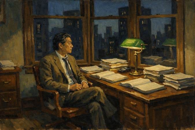 An AI-generated interpretation of Bill Hwang’s final hours at Archegos.
